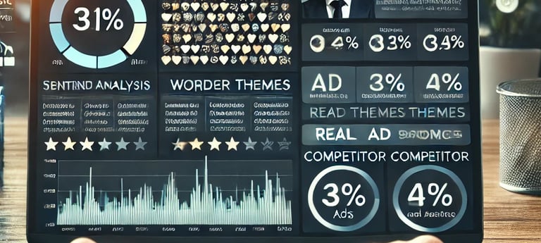Nuestra solución avanzada de análisis de opiniones recopila y procesa datos de las tiendas de apps, Google Maps y bibliotecas de anuncios de Facebook. Utilizando modelos de IA y LLM, transforma reseñas y datos en nubes de palabras, tendencias clave y recomendaciones estratégicas para optimizar tu posicionamiento y mejorar tu estrategia de marketing digital. 🚀.Además, analiza los anuncios de los competidores en la industria, evalúa patrones y detecta qué estrategias han funcionado. Esto permite optimizar tus propios anuncios y campañas basándose en lo que realmente genera impacto y descartar lo que no.